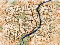 Deze kaart van Jena centrum heeft onze op maat gemaakte stijl “Serene Summer”. Deze stijl kenmerkt zich door de warme, zonovergoten aardse tinten. Het kleurenpalet is geïnspireerd op de art nouveau stijl van rond de eeuwwisseling. Deze kaart van Jena centrum geeft uw interieur een klassieke, moderne uitstraling.