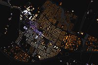 De gekleurde vlakken op de kaart zijn alle gebouwen van de stad Joure. Elk decennium van de vorige eeuw heeft een aparte kleur. Blauw is het oudste, van voor 1900, en bruin/Oranje vlakken zijn het meest recent gebouwd. In de binnenstad zijn alle gebouwen die tegen elkaar staan gekleurd naar het oudste gebouw in de rij. Hierdoor is de oude binnenstad beter zichtbaar.