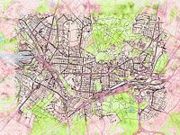 Koop de illustratie Kaart van Karlsruhe in de stijl 'Soothing Spring' van Maporia als print op canvas, aluminium dibond, (ingelijste) fotoprint, behang en ArtFrame. Voor jou op maat geprint in Fine-Art kwaliteit.