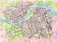 Koop dit abstracte kunstwerk Kaart van Linz centrum in de stijl 'Soothing Spring' van Maporia als print op canvas, aluminium dibond, (ingelijste) fotoprint, behang en ArtFrame. Voor jou op maat geprint in Fine-Art kwaliteit.