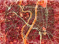 Koop dit abstracte kunstwerk Kaart van Lyon in de stijl 'Amber Autumn' van Maporia op canvas, aluminium dibond, (ingelijste) fotoprint, behang en ArtFrame, op maat geprint in Fine-Art kwaliteit.