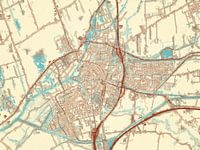 Hierbij presenteren wij een kaart van Meppel in de stijl Blauw & Crème. Deze digitale schildering toont een crème achtergrond, wat de rust symboliseert, terwijl de lichtblauwe tinten de waterwegen afbeelden en de levendige rode wegen de straten van de stad accentueren.