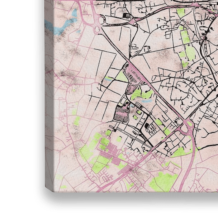Deze kaart van Mönchengladbach heeft de onze op maat gemaakte stijl “Soothing Spring”. Deze stijl is geïnspireerd door Japanse tekeningen van fleurige kersenbloesems. Met zijn levendige kleuren brengt deze kaart van Mönchengladbach uw kamer tot leven.