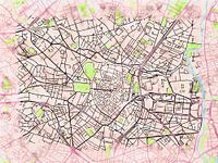 Koop dit abstracte kunstwerk Kaart van Montpellier centrum in de stijl 'Soothing Spring' van Maporia op canvas, aluminium dibond, (ingelijste) fotoprint, behang en ArtFrame, op maat geprint in Fine-Art kwaliteit.