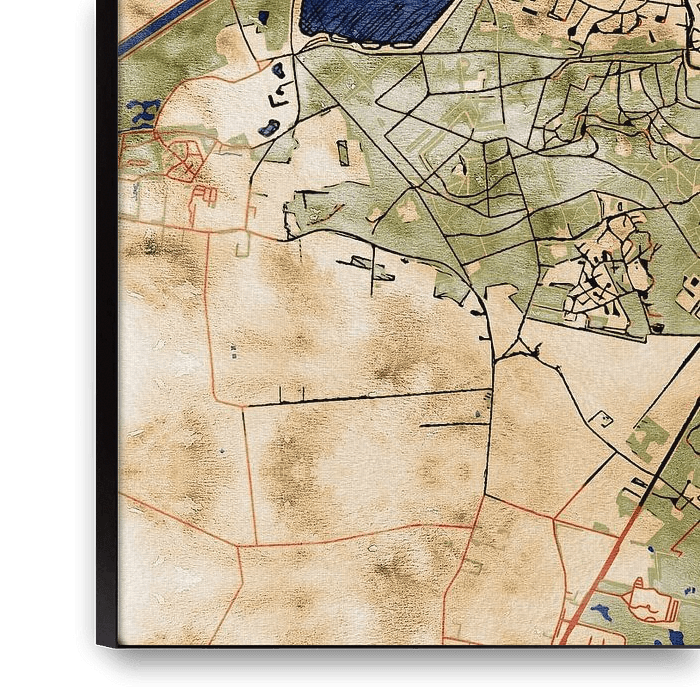 Deze kaart van Oosterhout heeft onze op maat gemaakte stijl “Serene Summer”. Deze stijl kenmerkt zich door de warme, zonovergoten aardse tinten. Het kleurenpalet is geïnspireerd op de art nouveau stijl van rond de eeuwwisseling. Deze kaart van Oosterhout geeft uw interieur een klassieke, moderne uitstraling.