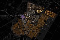 De gekleurde vlakken op de kaart zijn alle gebouwen van de stad Purmerend. Elk decennium van de vorige eeuw heeft een aparte kleur. Blauw is het oudste, van voor 1900, en bruin/Oranje vlakken zijn het meest recent gebouwd. In de binnenstad zijn alle gebouwen die tegen elkaar staan gekleurd naar het oudste gebouw in de rij. Hierdoor is de oude binnenstad beter zichtbaar.