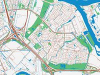Verken Ridderkerk met deze kaart in de stijl Urban Ivory. Met een kleurenpalet bestaande uit wit, rood, groen en blauw, brengt deze kaart Ridderkerk tot leven. Elk element op de kaart is met zorg gekozen en heeft een traditionele kleur gekregen, waardoor ze opvallen tegen de witte achtergrond.