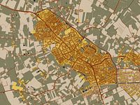 Deze kaart van Schijndel is geïnspireerd door het kleurenpalet van de het schilderij 'De Kus' van Gustav Klimt. De donkerblauwe en oranje tinten geven deze kaart van Schijndel een art deco uitstraling.