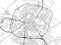 Kaart van Sneek met een witte achtergrond en zwarte wegen.