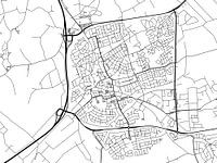 Kaart van Uden met een witte achtergrond en zwarte wegen.