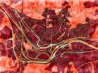 Deze kaart van Völklingen heeft onze op maat gemaakte stijl "Amber Autumn". De kaart heeft de natuurlijke kleuren van het seizoen, geïnspireerd op herfstbladeren. De aardse tinten van deze kaart van Völklingen zullen uw interieur een warme uitstraling geven.
