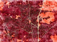 Koop dit abstracte kunstwerk Kaart van Waterloo in de stijl 'Amber Autumn' van Maporia op canvas, aluminium dibond, (ingelijste) fotoprint, behang en ArtFrame, op maat geprint in Fine-Art kwaliteit.