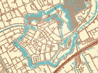 Hierbij presenteren wij een kaart van Woerden Centrum in de stijl Blauw & Crème. Deze digitale schildering toont een crème achtergrond, wat de rust symboliseert, terwijl de lichtblauwe tinten de waterwegen afbeelden en de levendige rode wegen de straten van de stad accentueren.