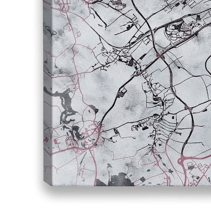 Deze kaart van Zwickau heeft de onze op maat gemaakte stijl "White Winter". De donkerrode straten lopen als warme slagaders door het koude winterse landschap. Een dik pak witte sneeuw bedekt de velden en de stad, terwijl de vegetatie hun bladeren hebben verloren en zich in het donker voorbereiden op de lente. Deze winterse…