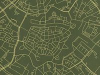 Verken Zwolle Centrum met deze kaart in de stijl Groen Goud. De goud gele wegen contrasteren tegen een groene achtergrond. In combinatie met een subtiele linnen textuur voegt deze kaart een vleugje verfijning en rust toe aan elke ruimte waarin het wordt opgehangen.