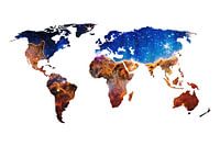 Kaart van de Wereld met de Carina Nebula op een witte achtergrond.