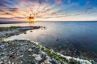 De kabelaarsbank bij Scharendijke is een mooie fotografische locatie aan het Grevelingenmeer. Door een iets langere sluitertijd lijkt het water net als spiegeltje en de wolken trekken langzaam je blikveld naar de toren.