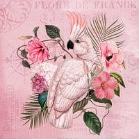 Nostalgische collage met exotische kaketoevogel en prachtige bloemen