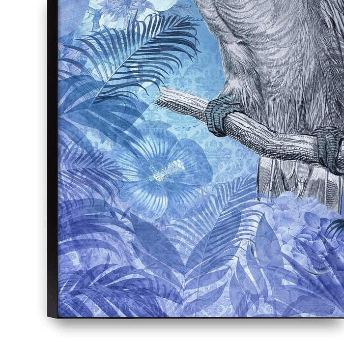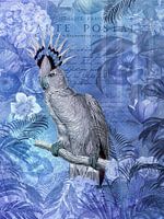 Nostalgische illustratie met tropische kaketoe in blauwe kleuren
