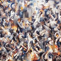 Een afbeelding waar continu nieuwe dingen aan zijn te ontdekken in deze kakofonie van geluid door muziek en zang.
