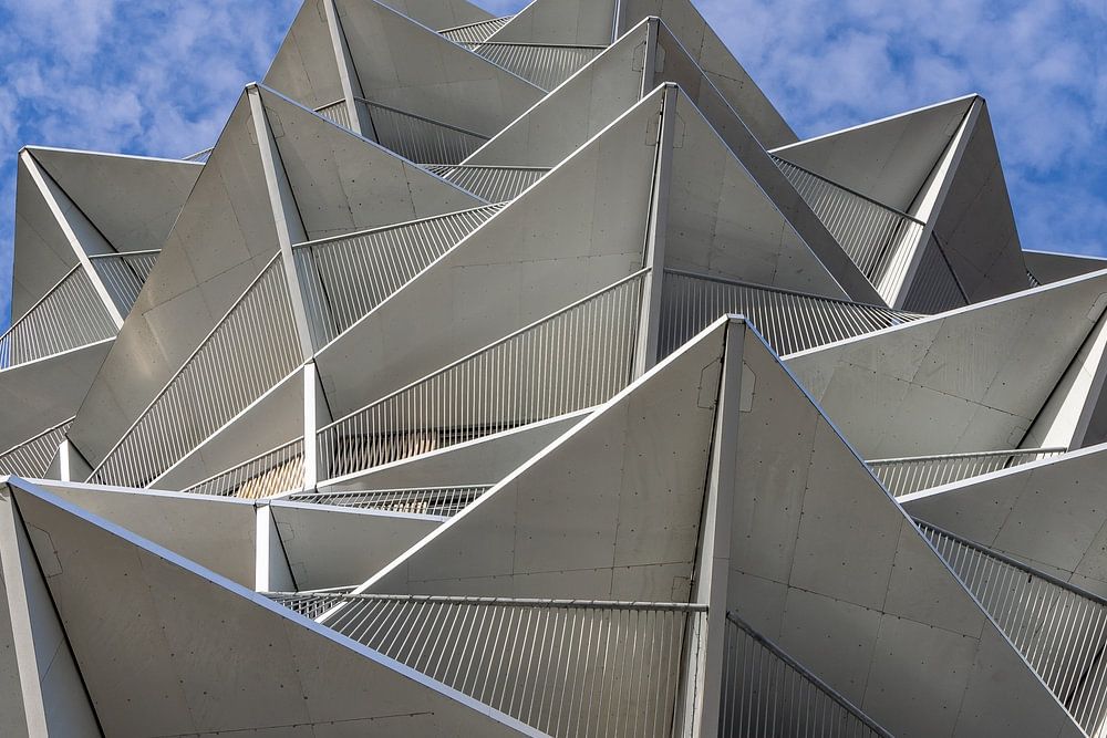 Kopenhagen, de hoofdstad van Denemarken is een stad die veel geeft om moderne architectuur. Zo zijn er al veel moderne en bijzondere bouwprojecten gerealiseerd in de groeiende stad. Een van de recentere projecten zijn de zogenaamde Kaktus Torens die met hun puntige balkons doen denken aan een kaktus. Het zijn huurappartementen die vlak bij het water liggen. Hier zie je de torens tegen een mooie blauwe lucht met veel kleine schapenwolkjes.
