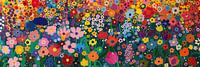 Een overvloed aan bloemen in een zee van kleur maakt deze afbeelding tot een visueel spektakel. Alsof je kijkt naar een natuurlijke kaleidoscoop, biedt dit werk een rijke variëteit aan vormen en kleuren, waarbij elke bloem uniek is maar samen een harmonieus geheel vormt. Van diepblauwe klokjes tot vurige rode klaprozen en zachte pastelkleurige madeliefjes; deze afbeelding is een ode aan de veelzijdigheid van de natuur. Een perfecte keuze voor iemand die het alledaagse wil overstijgen met een kunstwerk dat blijdschap en verwondering brengt.