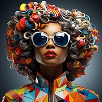 De centrale figuur, wiens gezicht subtiel vervaagd is om anonimiteit te behouden, lijkt te zweven tussen verschillende emotionele staten. De complexe structuren in het haar weerspiegelen de innerlijke strijd en de veelzijdigheid van menselijke gevoelens. Rode tinten symboliseren passie, terwijl blauwe en groene nuances rust en melancholie uitdrukken.