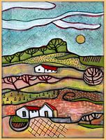 Episch landschap op papier, origineel kunstwerk. Dit is Abstract decoratief kunstwerk in een hedendaagse minimalistische stijl.