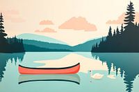 Koop dit landschapskunstwerk Kalm meer met rode kano en zwanen van Poster Art Shop als print op canvas, aluminium dibond, (ingelijste) fotoprint, behang en ArtFrame. Voor jou op maat geprint in Fine-Art kwaliteit.