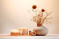 Een heerlijk rustige sfeer om te ontspannen, te mediteren en te genieten. Een scène uit een wellnessoase, een idyllische time-out of gewoon alleen zijn. Ervaar holistische regeneratie met al je zintuigen. Gemaakt in samenwerking met kunstmatige intelligentie.