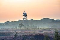 De Kalmthoutse Heide ontwaakt onder een gouden zonlicht onder toezicht van het silhouet van de brandtoren. Langzaam trekt de ochtenddauw over de heidevlakte en onthult de paarse bloemenpracht.