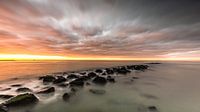 Op de kaloot in Zeeland met een mooie zonsopkomst met iets langere sluitertijd van 30 seconden waardoor een beweging in de wolken onstaat. En verhouding van 16:9 geeft een mooi beeld om naar te kijken.