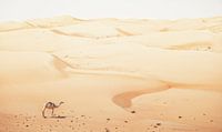 Een eenzame kameel tussen de zandduinen van de Wahiba Sands woestijn in Oman.