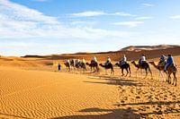 Kamelen karavaan door de zandduinen van de Sahara desert