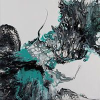 Een schilderij om naar te "zoeken" zoeken. Basiskleuren wit, zwart, grijs met fris turquoise.