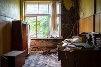 Dit is een foto genomen in de kamer van een verlaten school. Het verkennen van de school was heel leuk, omdat we geen idee hadden wat er binnen kon zijn. Deze kamer was een van de aangename verrassingen die het verlaten gebouw ons aanbood.