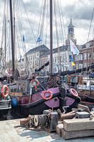 Kampen - Nederland , stad aan de ijssel met een prachtig stadsfront waar veel histirische boten liggen en aan de overkant vele haventjes