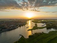 Kampen panorama van boven tijdens zonsondergang boven de IJssel van Sjoerd van der Wal Fotografie