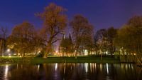 Sfeervolle nachtopname van de Hanzestad Kampen. De Cellebroederspoort gezien vanaf het naastgelegen stadspark.