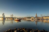 De skyline van Kampen in het gouden ochtendlicht op een rustige herfstochtend.