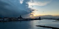 Het stadsfront van de Hanzestad Kampen, gemaakt met mijn drone in het avondlicht.