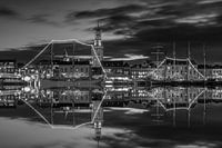 Stadsfront Kampen met Nieuwe Toren in zwart wit