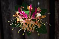 Close-up van de bloem van de Kamperfoelie met in het oog springende stampers.