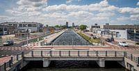 Het kanaal in Eindhoven met uitzicht op het havenhoofd in het Centrum. Het industriegebied is onderhevig aan veranderingen waardoor deze foto binnenkort niet meer gemaakt kan worden.