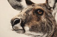 Deze verbluffend realistische close-up toont een kangoeroe met een alerte, intelligente blik en een vacht die tot in het kleinste detail is uitgewerkt. De warme tinten van bruin en grijs worden versterkt door het neutrale achtergrondvlak, waardoor de textuur van de haren en de glans in het oog nog sterker tot hun recht komen. Het werk…