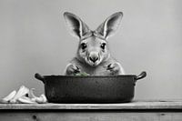 Een speelse kangoeroe in een kookpot voegt een vleugje humor en charme toe aan elke keuken. Met zijn grote oren en nieuwsgierige ogen brengt hij een levendige frisheid in de kamer en inspireert hij tot culinaire avonturen. Perfect om gasten te laten glimlachen en tegelijkertijd hun eetlust op te wekken!