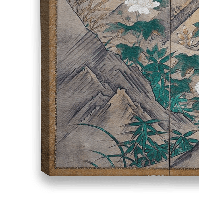 Vouwscherm met zes panelen, inkt, kleur en goud op papier