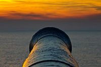 Kanon te Vlissingen tijdens mooie avond luchtkleuren.