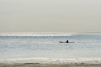 Kanovaarder op de Waddenzee bij Vlieland in de spiegeling van het zonlicht. Een groot deel van het Nederlandse Waddengebied staat op de Werelderfgoedlijst van UNESCO.