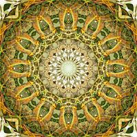 Een caleidoscopisch beeld, gecreëerd door het kopieren, roteren en mengen van een foto van een nepenthes, een vleesetende tropische bekerplant (kantong semar in het Indonesisch)
